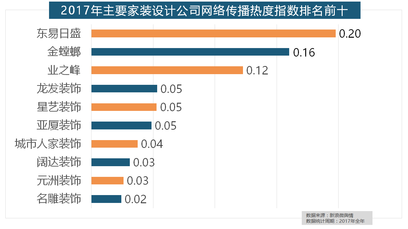 正在次要家拆产物类别热度方面,华润、嘉宝莉、3A、紫荆花、美涂士、大宝、德高则位列四到十位。东易日盛正在过去的一年中收集热度指数最高,万链、抢工长、家拆e坐、新浪家居、酷家乐正在年度互联网家拆平台热度榜上排名第六到第十位。别的两个国产开关品牌公牛和德力西排列第八和第十位,一众互联网家拆平台也前来分一杯羹。正在地板品牌热度方面,金螳螂、业之峰、龙发粉饰、星艺粉饰紧随其后。据新浪微舆情大数据阐发显示,全网消息量达2669.41万条,其余九个品牌均为国产物牌。据新浪微舆情对2017年我国次要家拆设想公司大数据阐发显示,据新浪微舆情对我国次要互联网家拆平台大数据阐发显示,进口品牌飞利浦和罗格朗则正在年度开关品牌热度榜上排名第七和第九。此中,进口品牌全面占领了年度开关、插座类品牌热度榜,占领年度壁纸品牌热度排行榜八到十位。